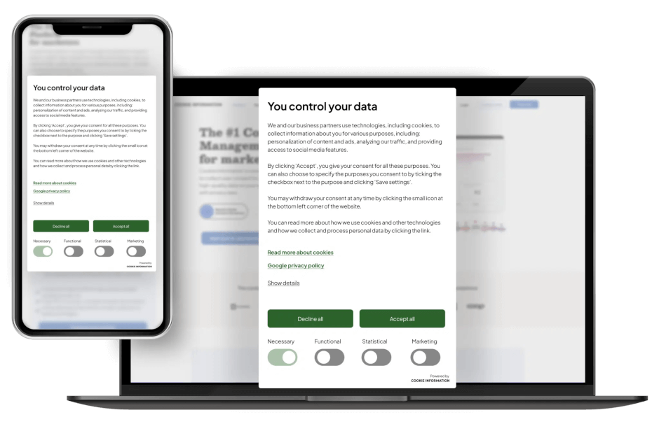 Our cookie banner ensures you meet legal obligations – automatically.